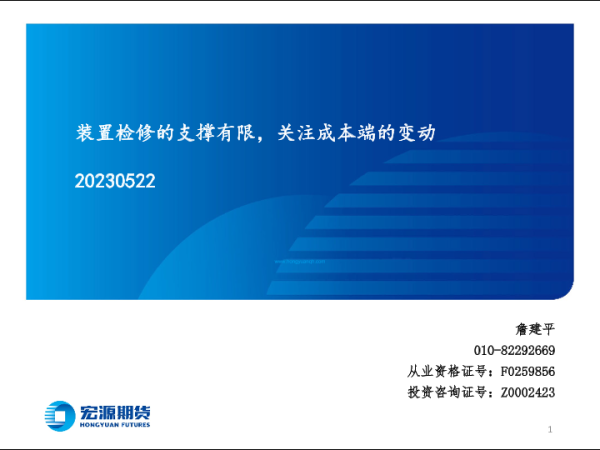 【宏源期货】【20230522】装置检修的支撑有限,关注成本端的变动-27页