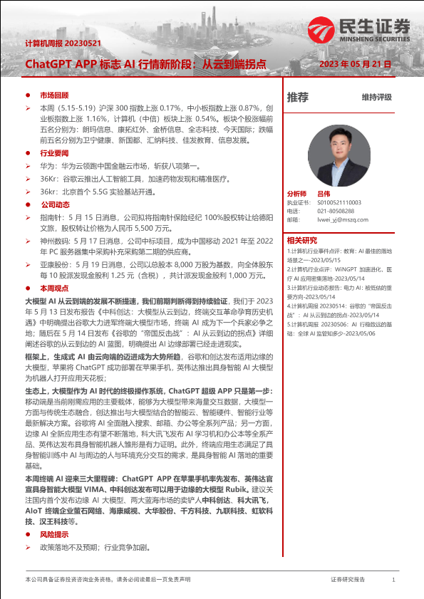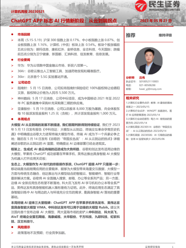 【民生证券】【20230521】计算机周报:ChatGPT APP标志AI行情新阶段:从云到端拐点-23页
