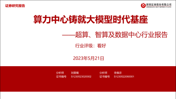 【浙商证券】【20230521】超算、智算及数据中心行业报告:算力中心铸就大模型时代基座-32页