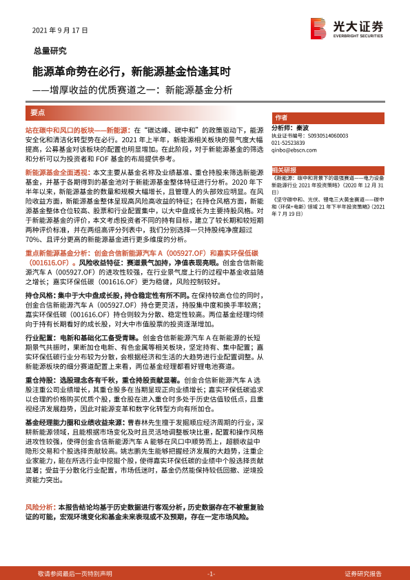 【光大证券】【20210917】增厚收益的优质赛道之一:新能源基金分析,能源革命势在必行,新能源基金恰逢其时-30页