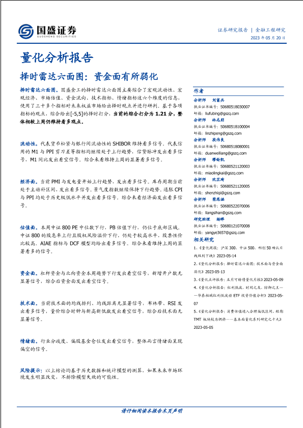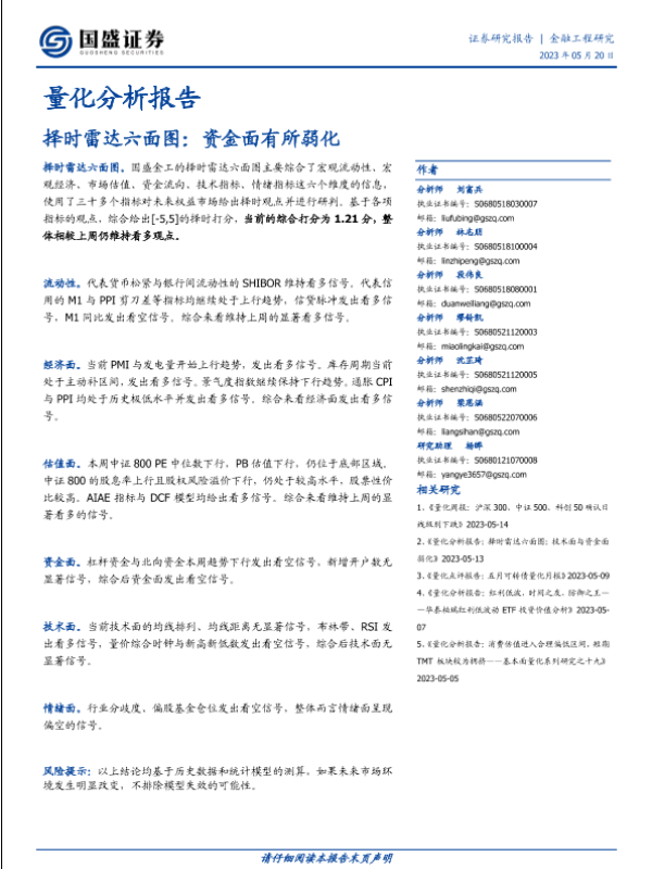 【国盛证券】【20230520】量化分析报告:择时雷达六面图:资金面有所弱化-23页