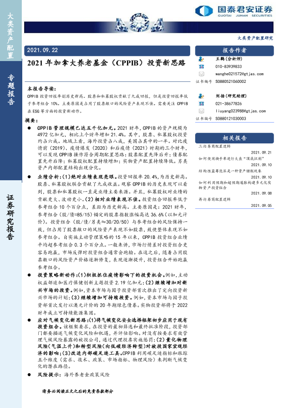 【国泰君安证券】【20210922】2021年加拿大养老基金(CPPIB)投资新思路-18页