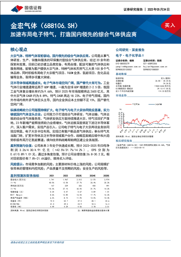 国信证券 市场分析 电子特气 综合气体供应商 金宏气体
