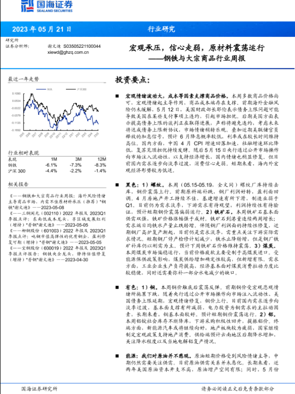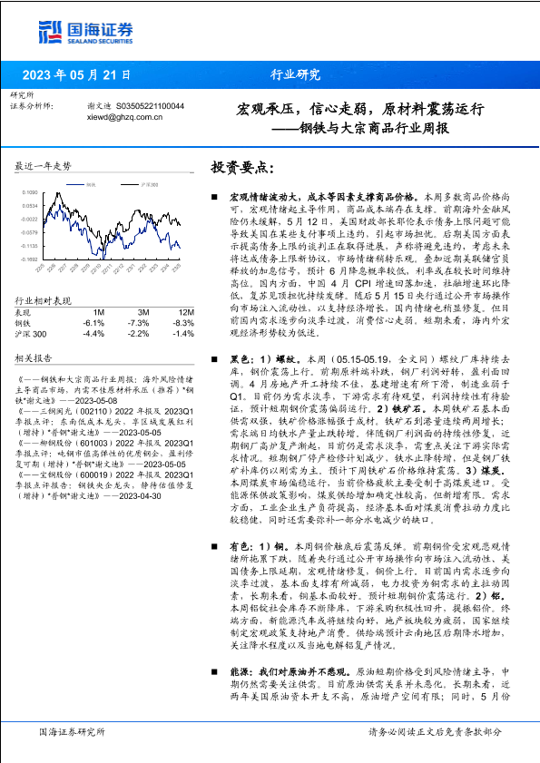 【国海证券】【20230521】钢铁与大宗商品行业周报:宏观承压,信心走弱,原材料震荡运行-31页