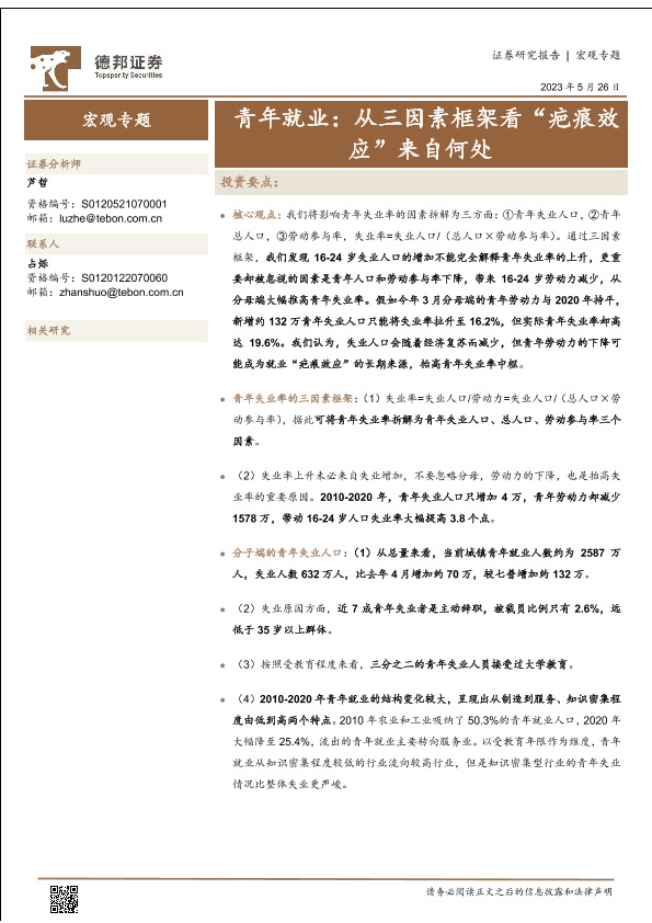 【德邦证券】【20230526】青年就业:从三因素框架看“疤痕效应”来自何处-19页
