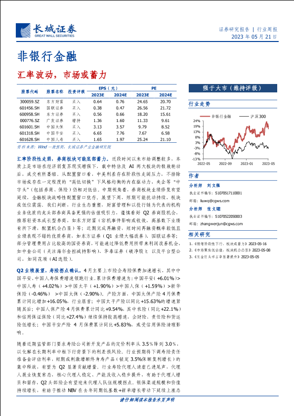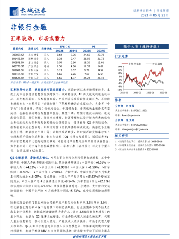 【长城证券】【20230521】非银行金融行业周报:汇率波动,市场或蓄力-33页