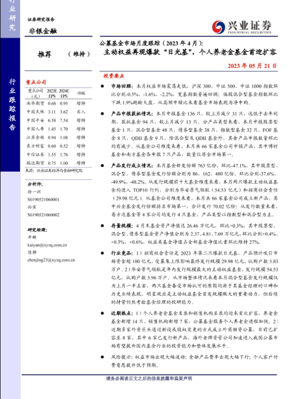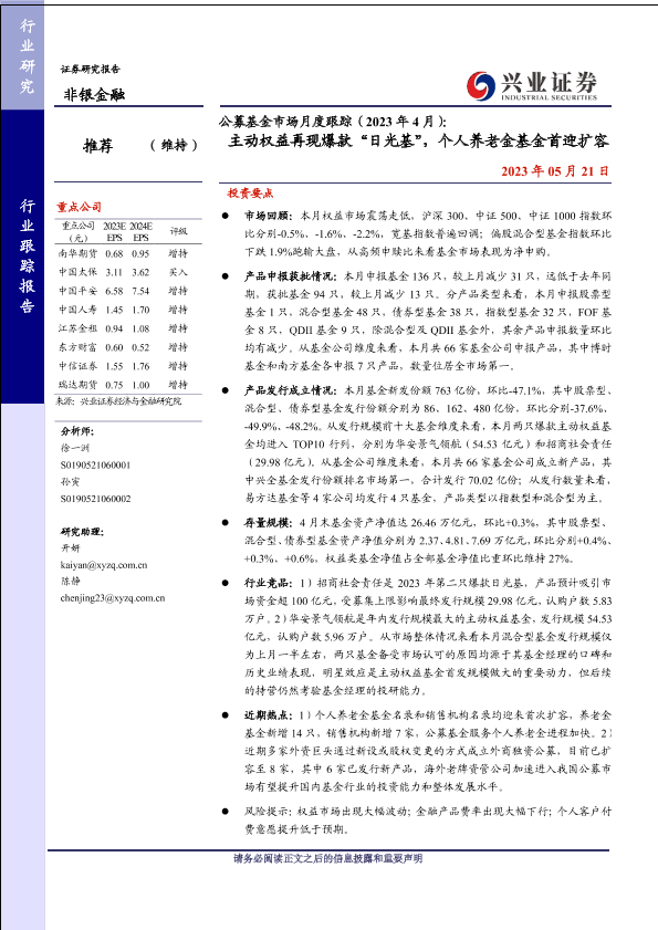 【兴业证券】【20230521】公募基金市场月度跟踪(2023年4月):主动权益再现爆款“日光基”,个人养老金基金首迎扩容-26页