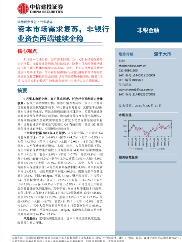 【中信建投证券】【20230521】非银金融行业:资本市场需求复苏,非银行业资负两端继续企稳-22页
