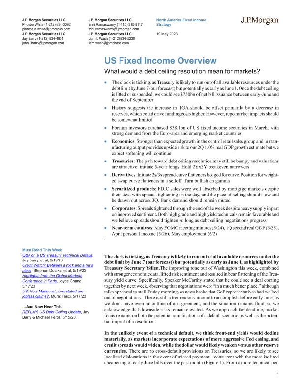 【J.P. Morgan】【20230519】gan Econ FI-US Fixed Income Overview What would a debt ceiling resolution mean for markets?-13页