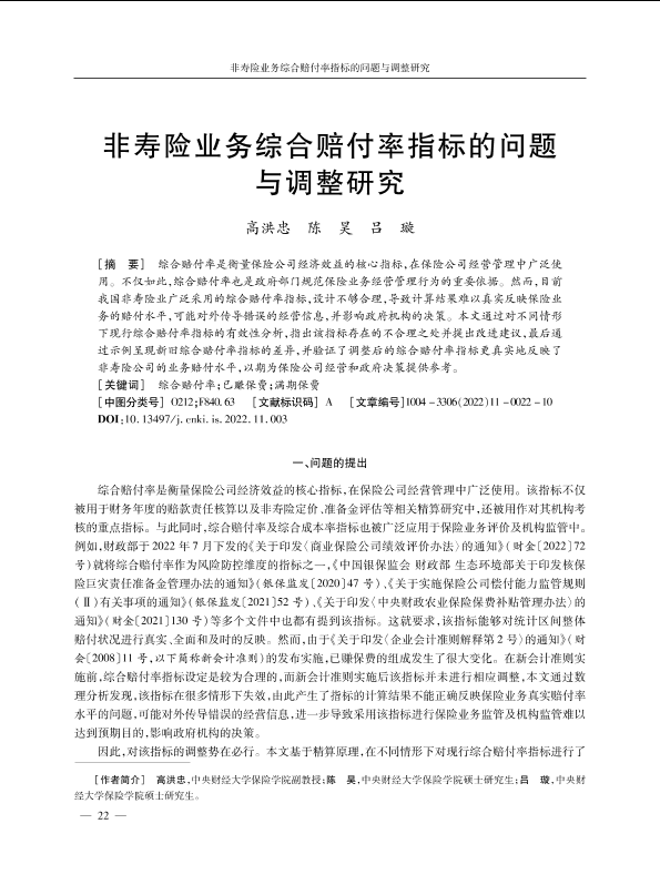 【高洪忠】【202211】非寿险业务综合赔付率指标的问题与调整研究-10页