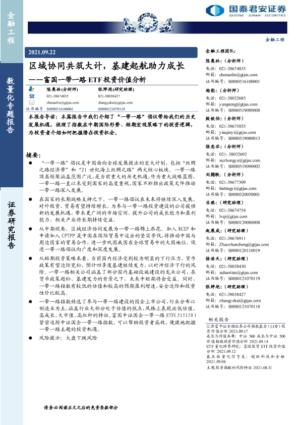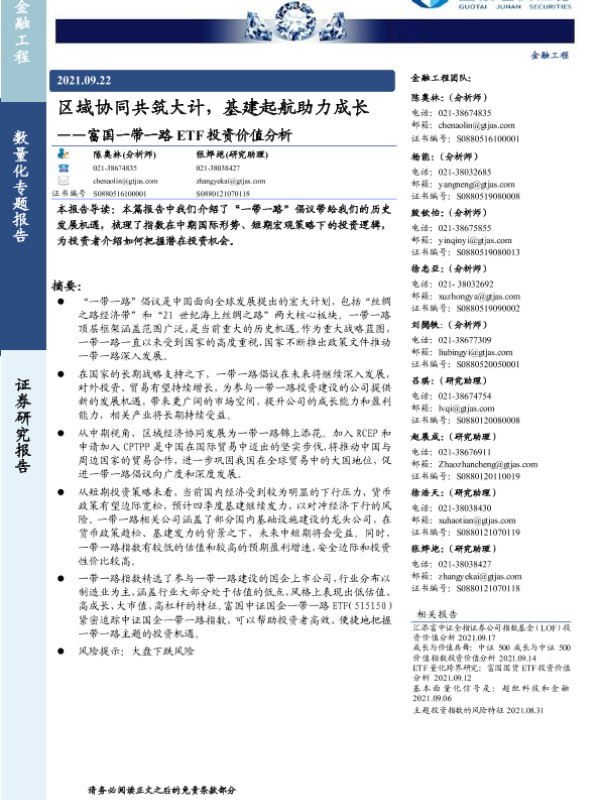 【国泰君安证券】【20210922】富国一带一路ETF投资价值分析:区域协同共筑大计,基建起航助力成长-15页
