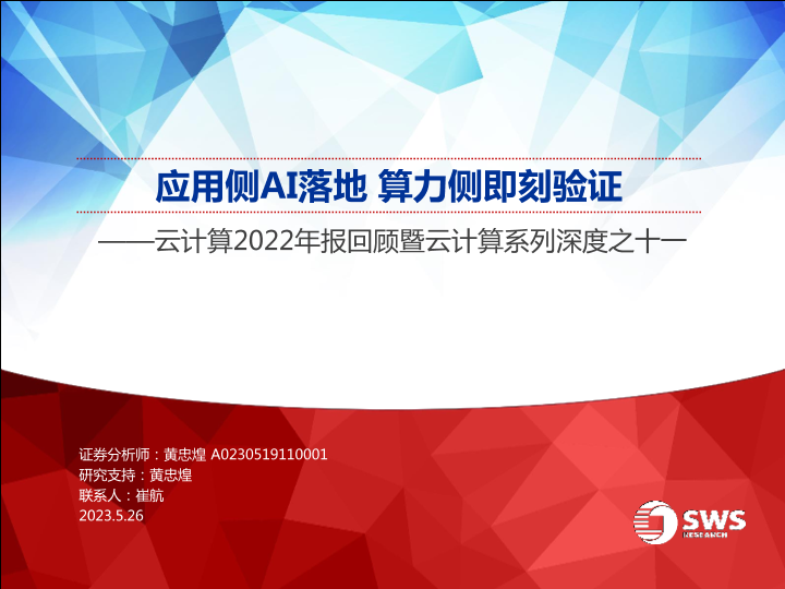 【申万宏源】【20230526】云计算行业2022年报回顾暨云计算系列深度之十一:应用侧AI落地,算力侧即刻验证-36页