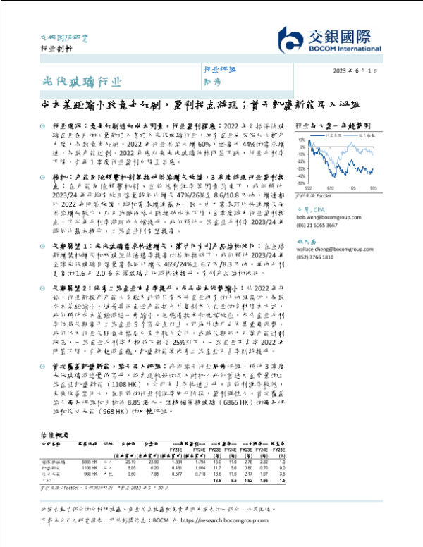 【交银国际】【20230601】光伏玻璃行业:成本差距缩小致竞争加剧,盈利拐点将现;首予凯盛新能买入评级-49页