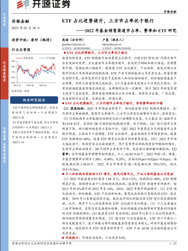 【开源证券】【20230530】2022年基金销售渠道市占率、费率和ETF研究:ETF占比逆势提升,三方市占率优于银行-25页