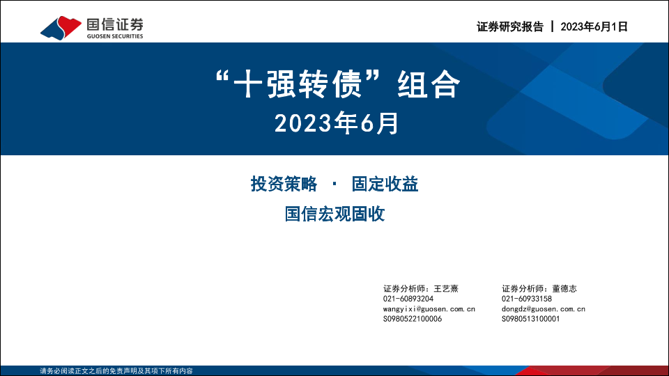 【国信证券】【20230601】2023年6月“十强转债”组合-30页
