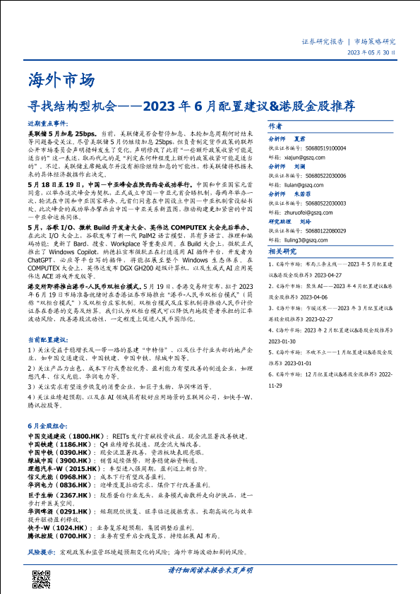 【国盛证券】【20230530】2023年6月配置建议&港股金股推荐:寻找结构型机会-20页