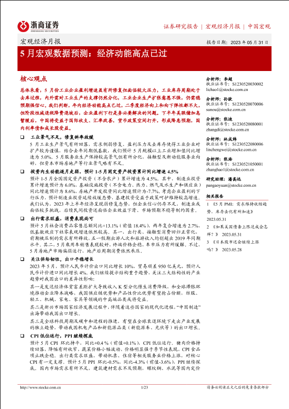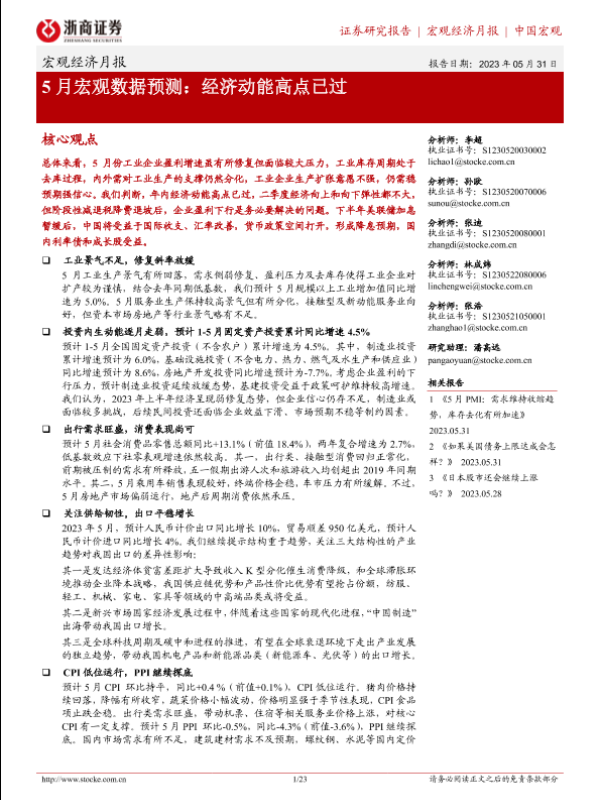 【浙商证券】【20230531】5月宏观数据预测:经济动能高点已过-23页