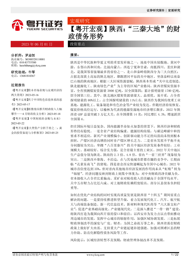 【粤开证券】【20230601】【粤开宏观】陕西:“三秦大地”的财政债务形势-22页