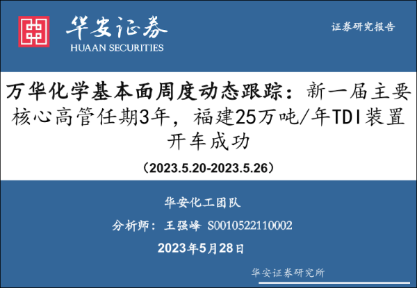【华安证券】【20230528】万华化学基本面周度动态跟踪:新一届主要核心高管任期3年,福建25万吨年TDI装置开车成功-33页