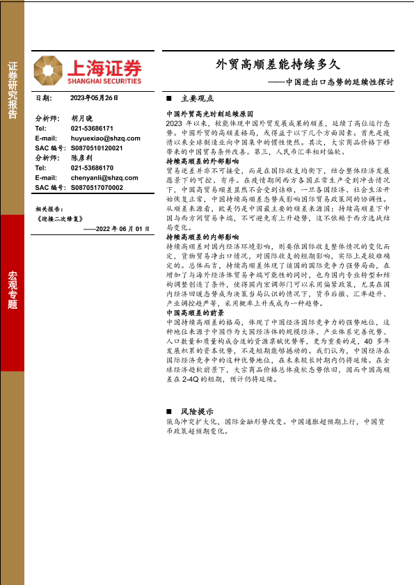 【上海证券】【20230526】中国进出口态势的延续性探讨:外贸高顺差能持续多久-15页