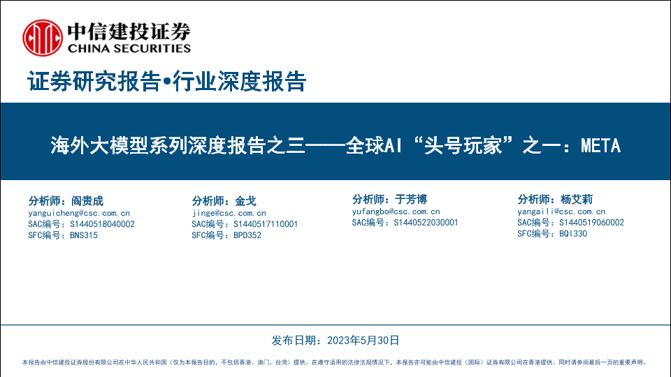 【中信建投证券】【20230530】人工智能行业海外大模型系列深度报告之三:全球AI“头号玩家”之一,META-53页