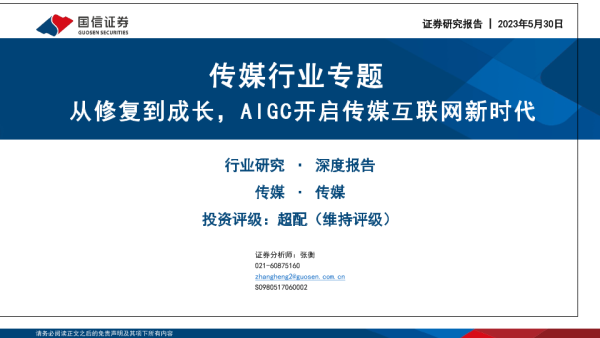 【国信证券】【20230530】传媒行业专题:从修复到成长,AIGC开启传媒互联网新时代-54页