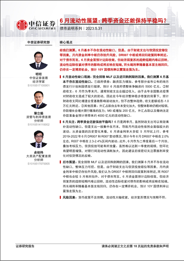 【中信证券】【20230531】6月流动性展望:跨季资金还能保持平稳吗?-19页