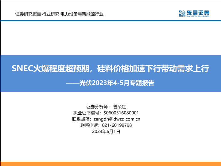 【东吴证券】【20230601】光伏2023年4-5月专题报告:SNEC火爆程度超预期,硅料价格加速下行带动需求上行-70页
