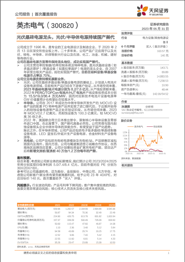 【天风证券】【20230531】光伏晶硅电源龙头,光伏半导体电源持续国产替代-30页