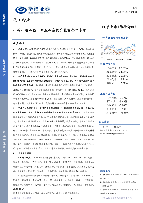 【华福证券】【20230521】化工行业专题研究:一带一路加强,中亚峰会提升能源合作水平-27页