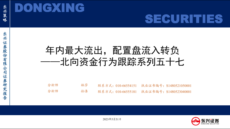 【东兴证券】【20230531】北向资金行为跟踪系列五十七:年内最大流出,配置盘流入转负-26页