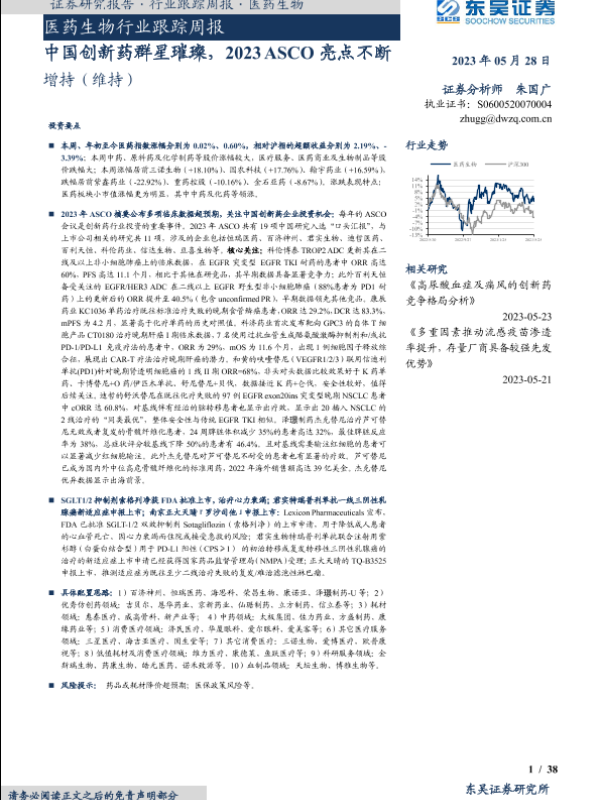 【东吴证券】【20230528】医药生物行业跟踪周报:中国创新药群星璀璨,2023ASCO亮点不断-38页
