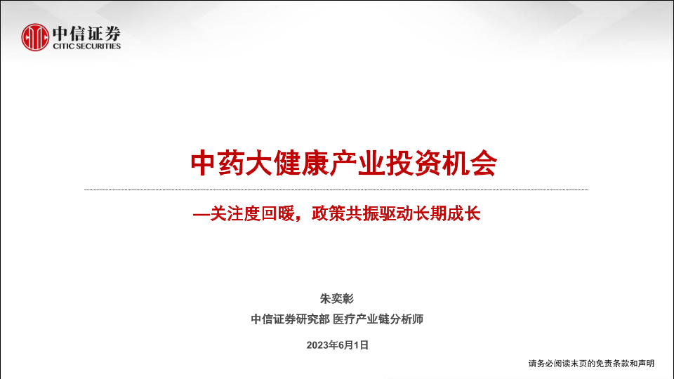 【中信证券】【20230601】医药行业中药大健康产业投资机会:关注度回暖,政策共振驱动长期成长-21页
