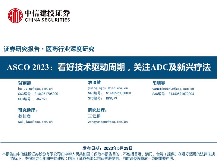 【中信建投证券】【20230529】医药行业深度研究:ASCO2023,看好技术驱动周期,关注ADC及新兴疗法-69页