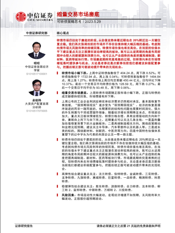 【中信证券】【20230529】可转债策略思考:缩量交易市场磨底-22页