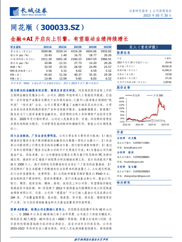 【长城证券】【20230530】同花顺(300033)金融+AI开启向上引擎,有望驱动业绩持续增长-23页