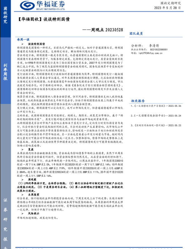 【华福证券】【20230528】周观点:【华福固收】谈谈特别国债-20页