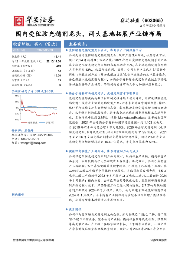 产业链布局 光稳定剂 市场分析 财务预测 高分子材料
