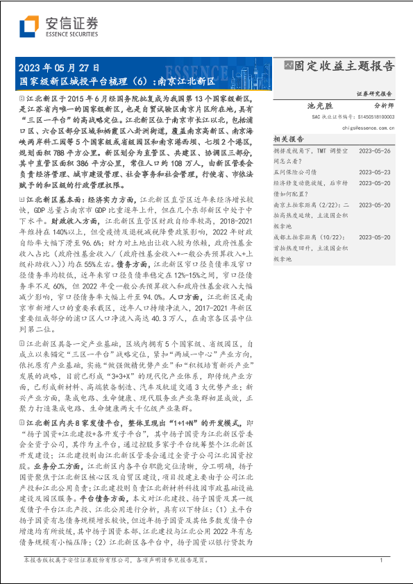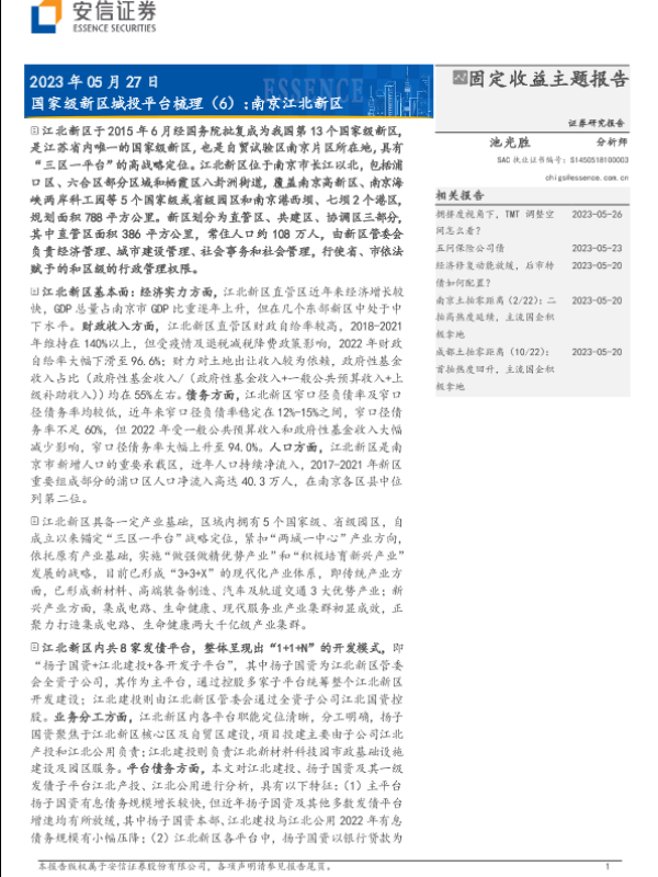 【安信证券】【20230527】国家级新区城投平台梳理(6):南京江北新区-18页