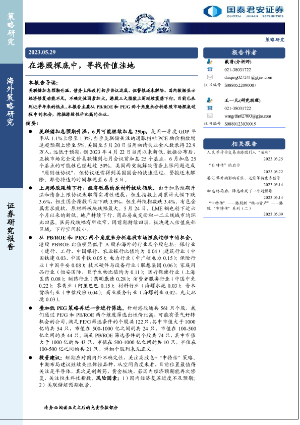 【国泰君安证券】【20230529】在港股探底中,寻找价值洼地-23页