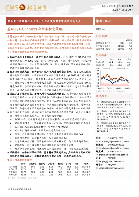 【海通证券】【20230530】基础化工行业2023年中期投资策略:持续看好进口替代成长股,及经济复苏趋势下优质白马龙头-52页