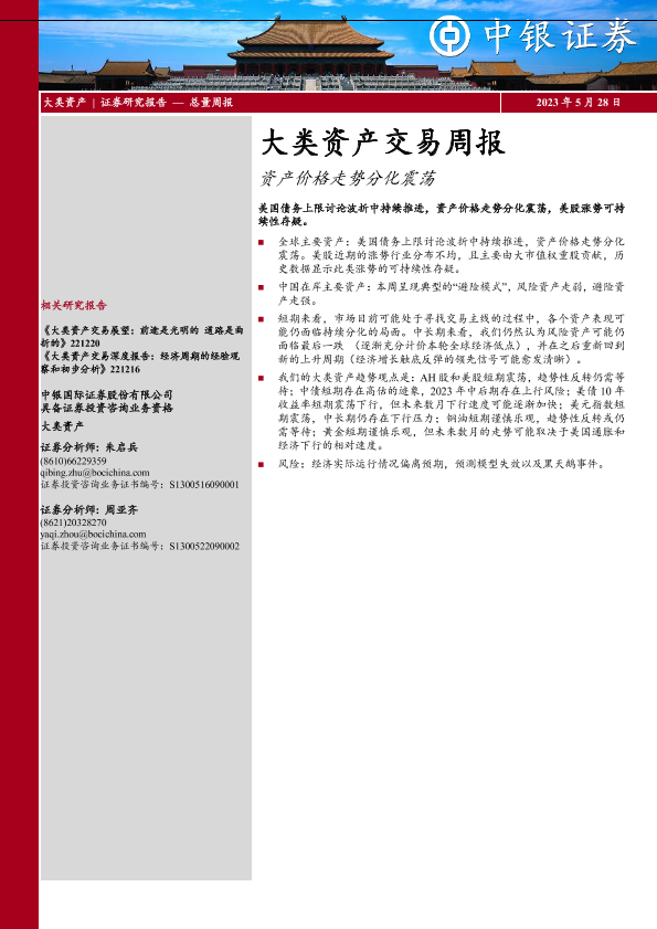 【中银证券】【20230528】大类资产交易周报:资产价格走势分化震荡-15页