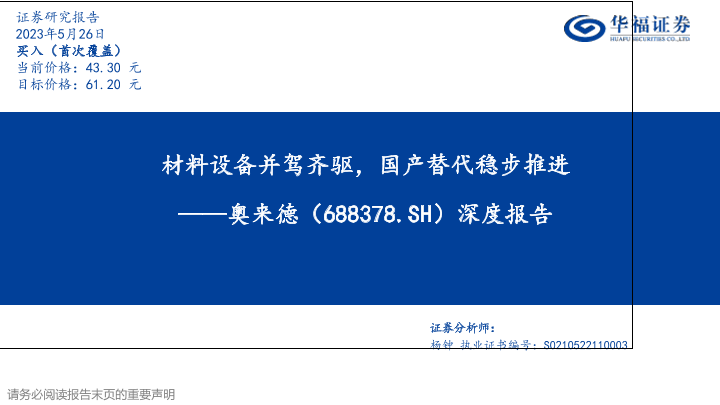 【华福证券】【20230526】奥来德深度报告(688378):材料设备并驾齐驱,国产替代稳步推进-37页