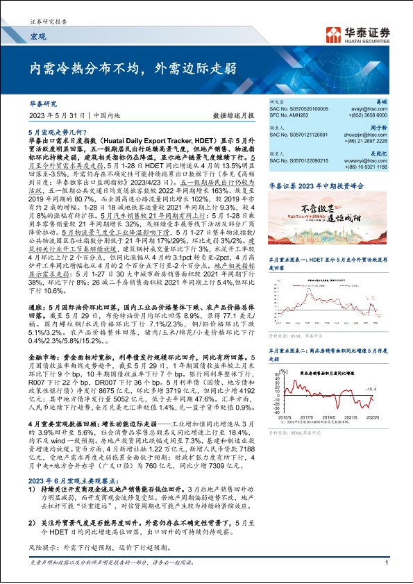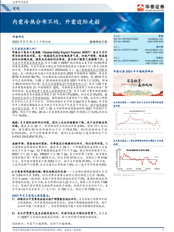 【华泰证券】【20230531】宏观数据综述月报:内需冷热分布不均,外需边际走弱-18页