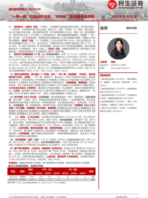 【民生证券】【20230528】建材建筑周观点:“一带一路”仍是全年主线,“中特估”重在基本面改善-24页