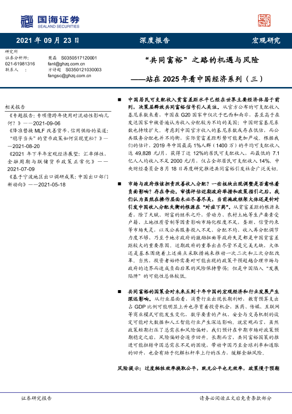 【国海证券】【20210923】站在2025年看中国经济系列(三):“共同富裕”之路的机遇与风险-36页