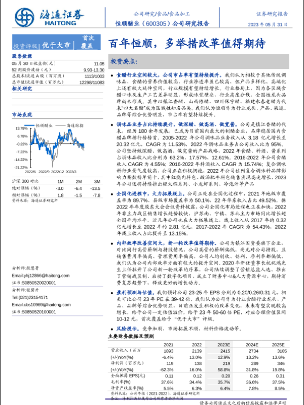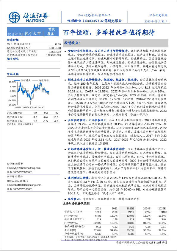 【海通证券】【20230531】恒顺醋业(600305)百年恒顺,多举措改革值得期待-26页
