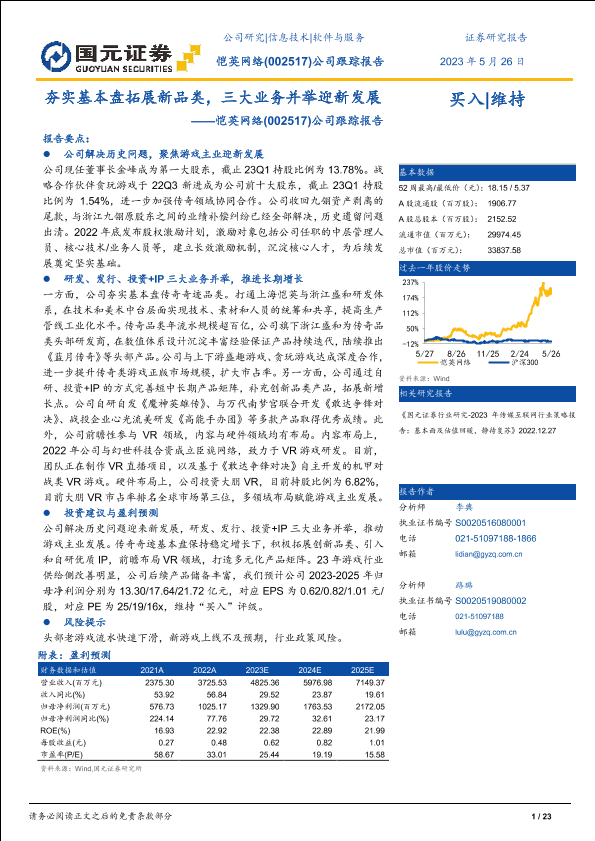 【国元证券】【20230526】恺英网络(002517)公司跟踪报告:夯实基本盘拓展新品类,三大业务并举迎新发展-23页