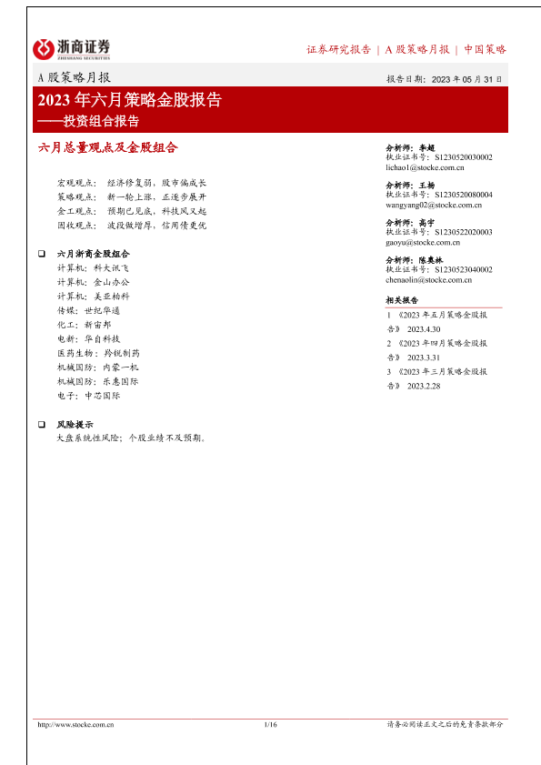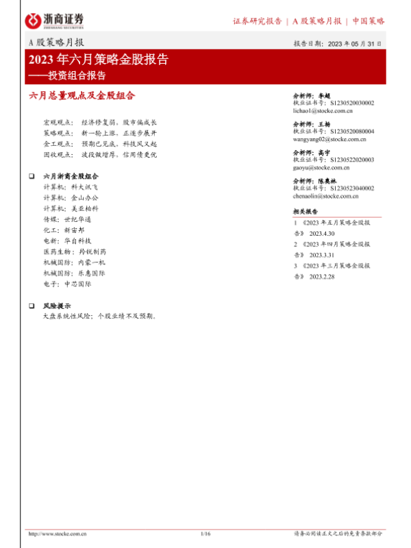 【浙商证券】【20230531】2023年六月策略金股报告-16页