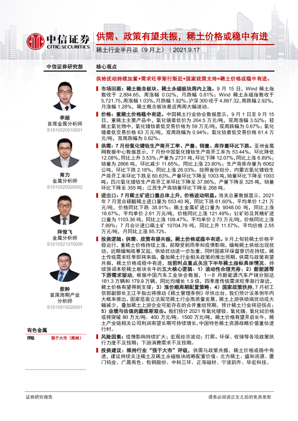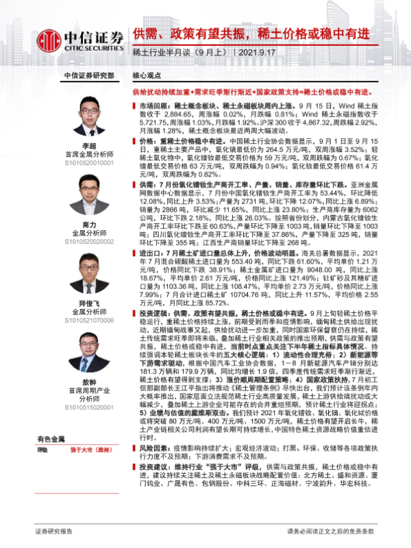 【中信证券】【20210917】稀土行业半月谈(9月上):供需、政策有望共振,稀土价格或稳中有进-35页